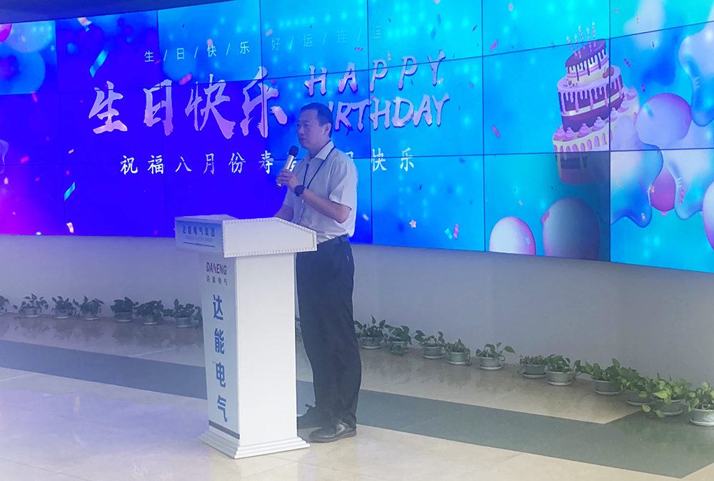 達(dá)能電氣集團(tuán)對實(shí)習(xí)大學(xué)生的加入給予熱烈歡迎,在未來的工作中,他們將會直接參與研發(fā)課題,深入項目一線參與技術(shù)支持,融入銷售團(tuán)隊開展市場開拓。通過一些列扎實(shí)的工作不斷夯實(shí)工作基礎(chǔ),持續(xù)收貨豐富的實(shí)踐經(jīng)驗,在工作中茁壯成長。隨后,會議進(jìn)行第二項內(nèi)容,對8月份過生日的員工進(jìn)行慶生,董事長高藝為壽星們頒發(fā)紅包及蛋糕卷,全體員工為壽星們并送上真誠的祝福。