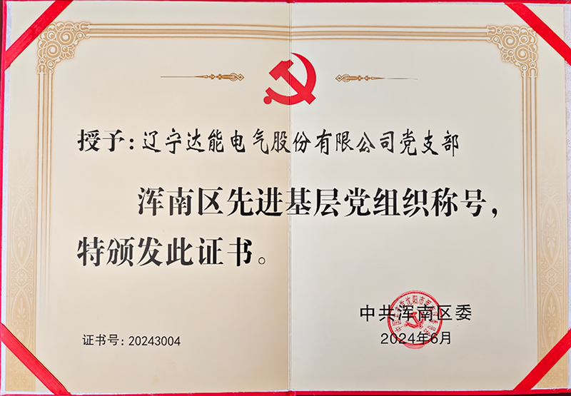 在黨的光輝旗幟下,達能電氣以其卓越的黨建工作和對黨的堅定忠誠,榮獲了先進基層黨組織的崇高稱號,并于近日接受了這一飽含榮耀的榮譽證書。